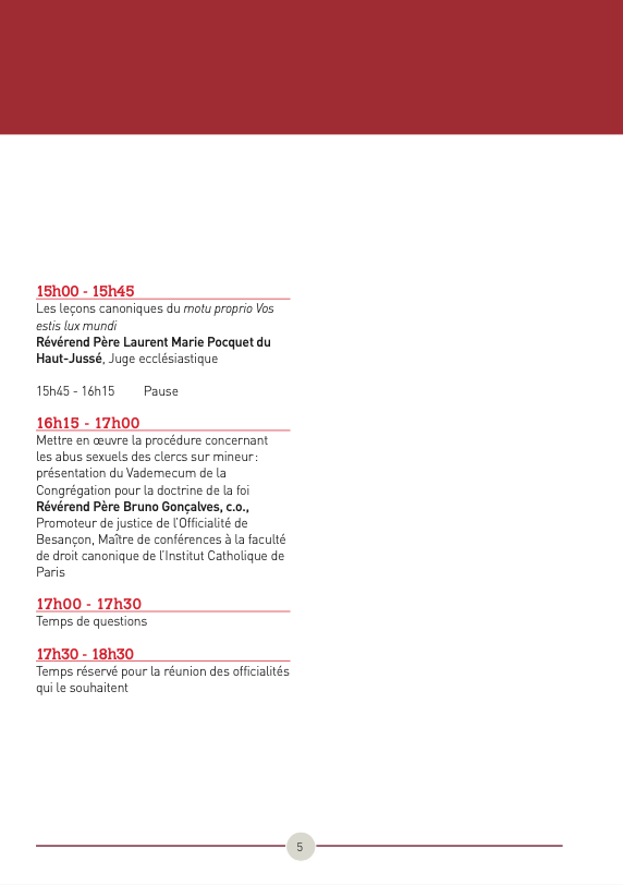 26e édition de la session des personnels d'officialités