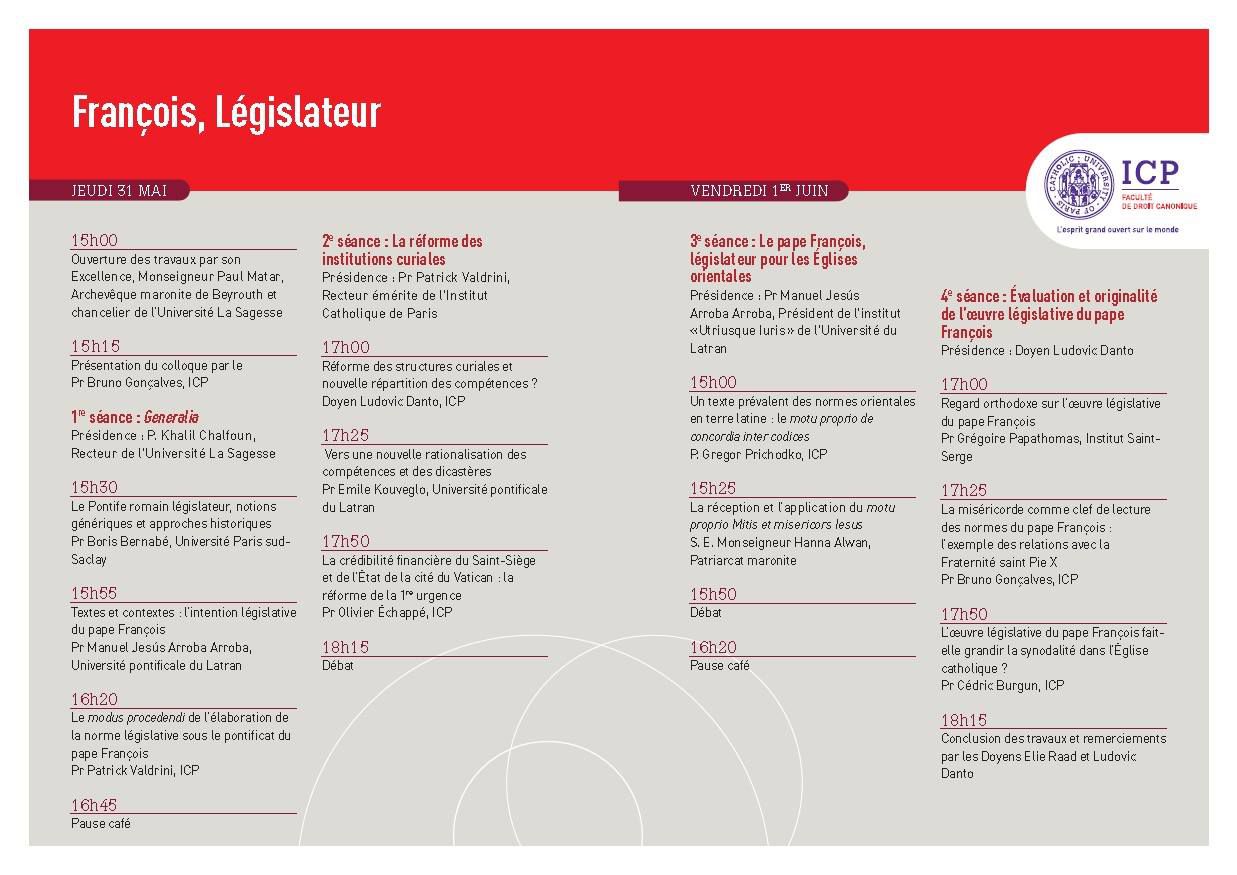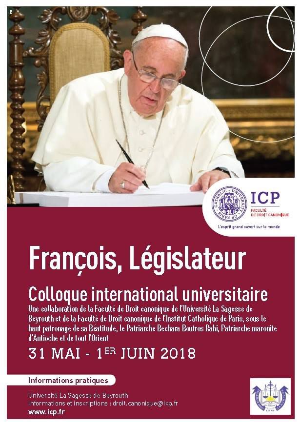 Colloque "François, législateur" (Beyrouth, Université La Sagesse, 31 mai - 1er juin)