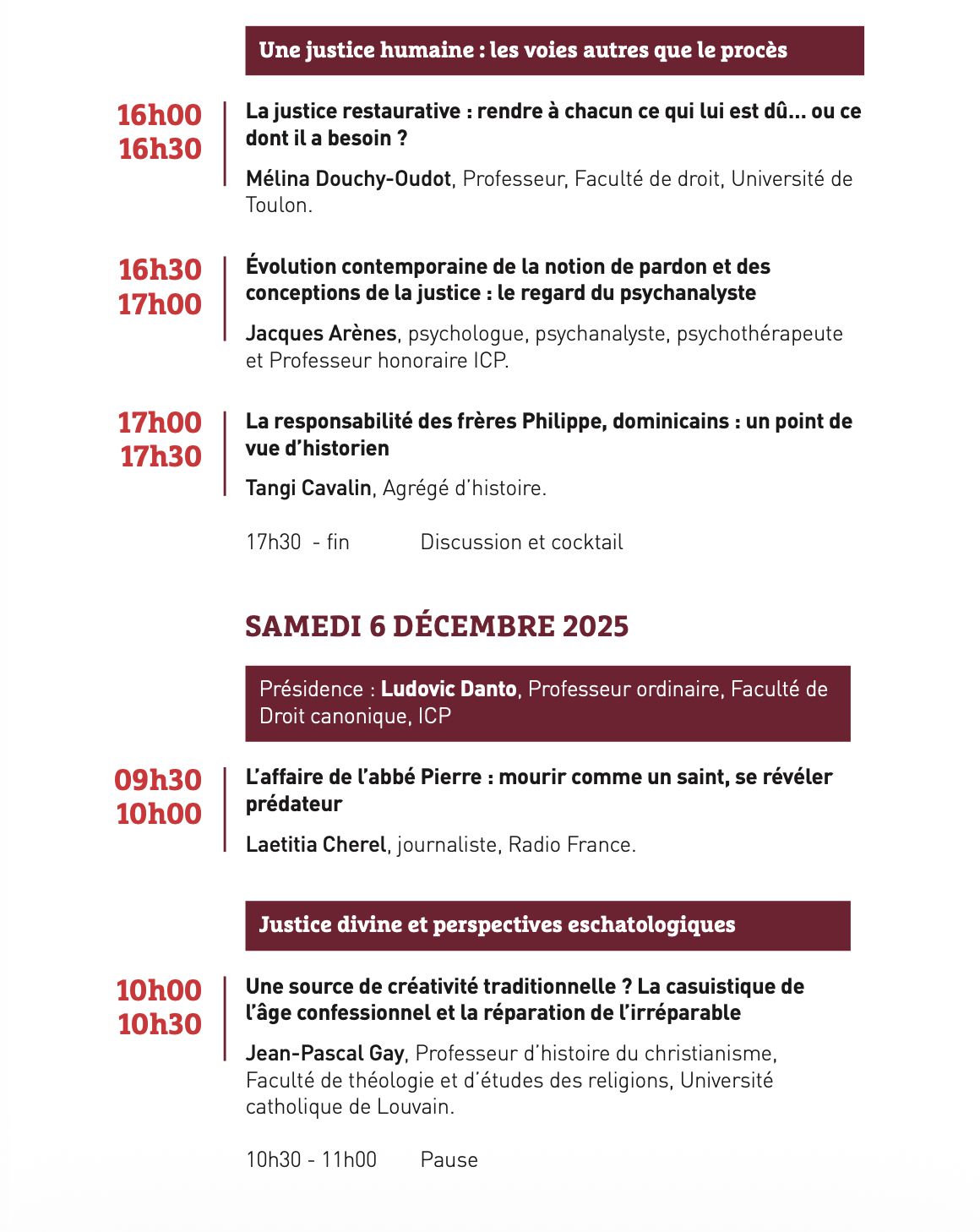 Ce colloque se propose ainsi de contribuer, suivant une approche pluridisciplinaire, à la réflexion sur la justice et en particulier la justice dans l’Église.