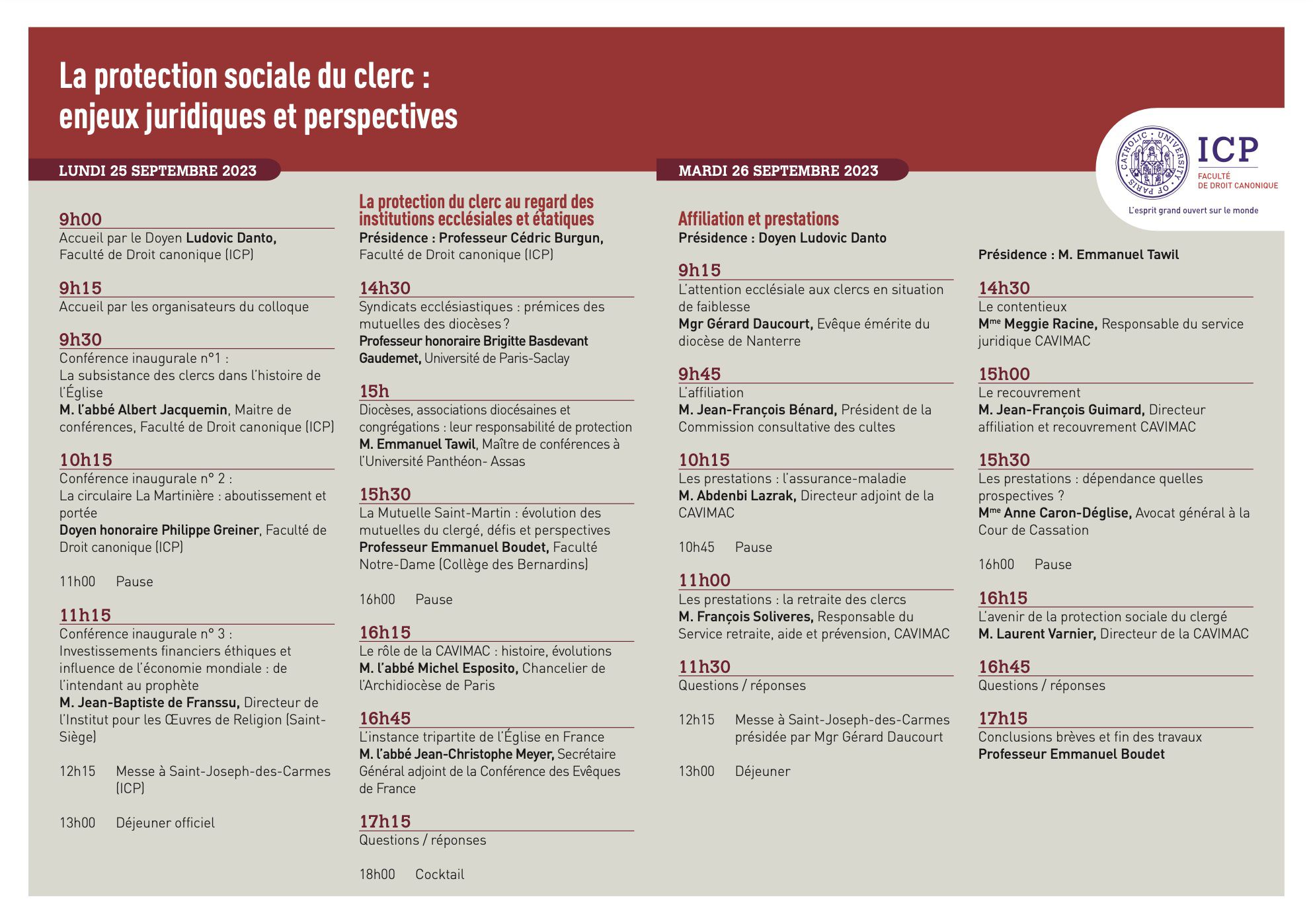 Colloque "La protection sociale du clerc : enjeux juridiques et perspectives" (25 et 26 sept. 2023)
