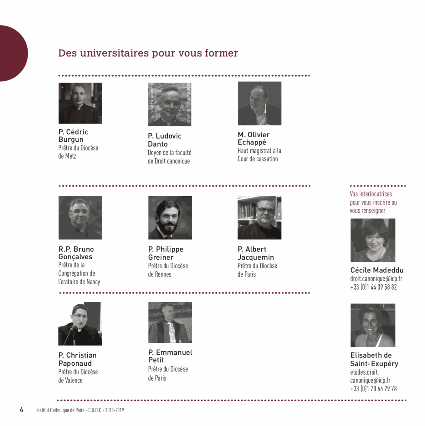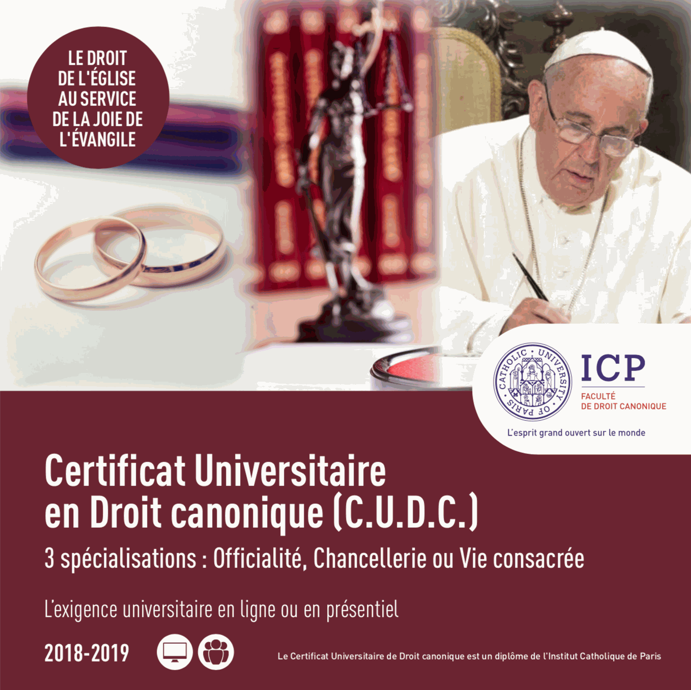 Vous pouvez télécharger la brochure des C.UD.C. de la Faculté de Droit canonique de l'ICP en cliquant ici, ou nous contacter pour plus d'informations.