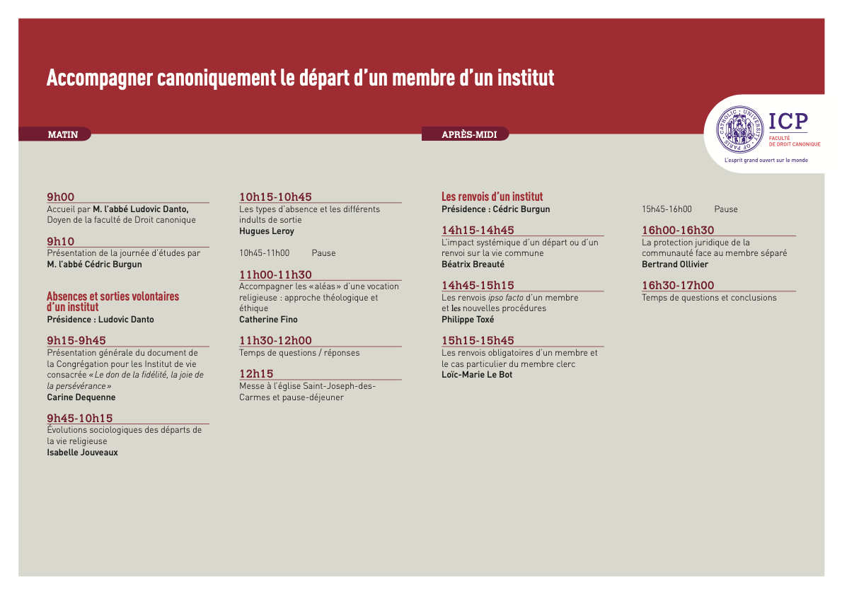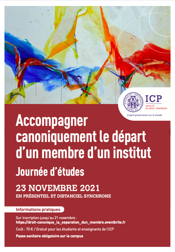 Journée d'études : "Accompagner canoniquement le départ d'un membre" (mardi 23 novembre 2021)