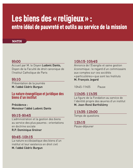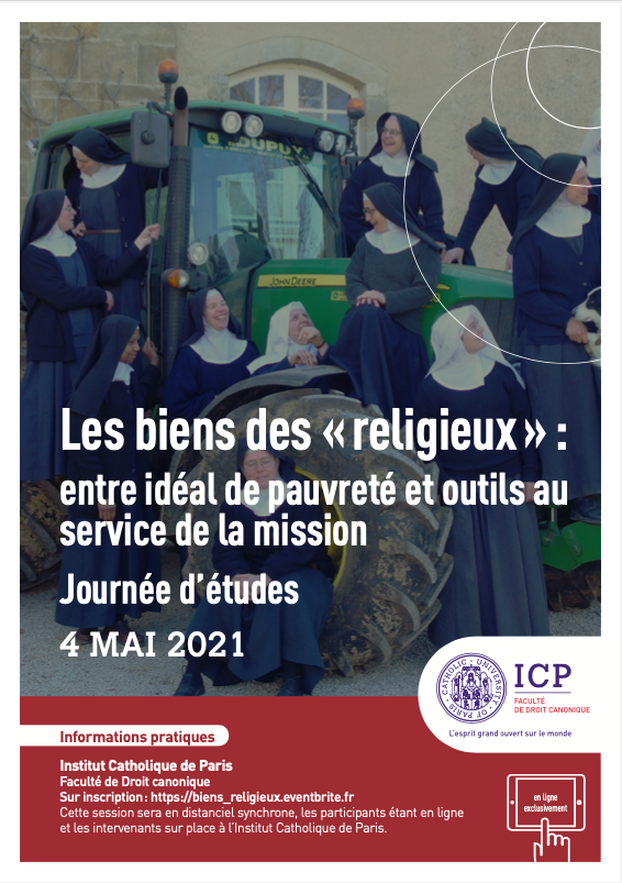 La Faculté de droit canonique a le plaisir de vous inviter à la Journée d’études « Les biens des religieux : entre idéal de pauvreté et outils au service de la mission ».