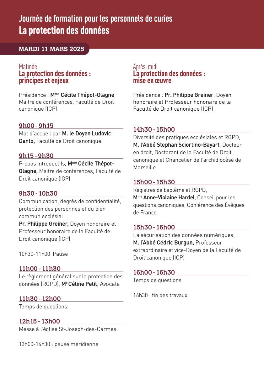 La journée annuelle des formations des curies diocésaines est consacrée cette année à la protection des données. Obligation imposée tant par les normes européennes et étatiques que par le droit canonique, elle suscite de nombreuses questions quant à sa mise en œuvre pratique.